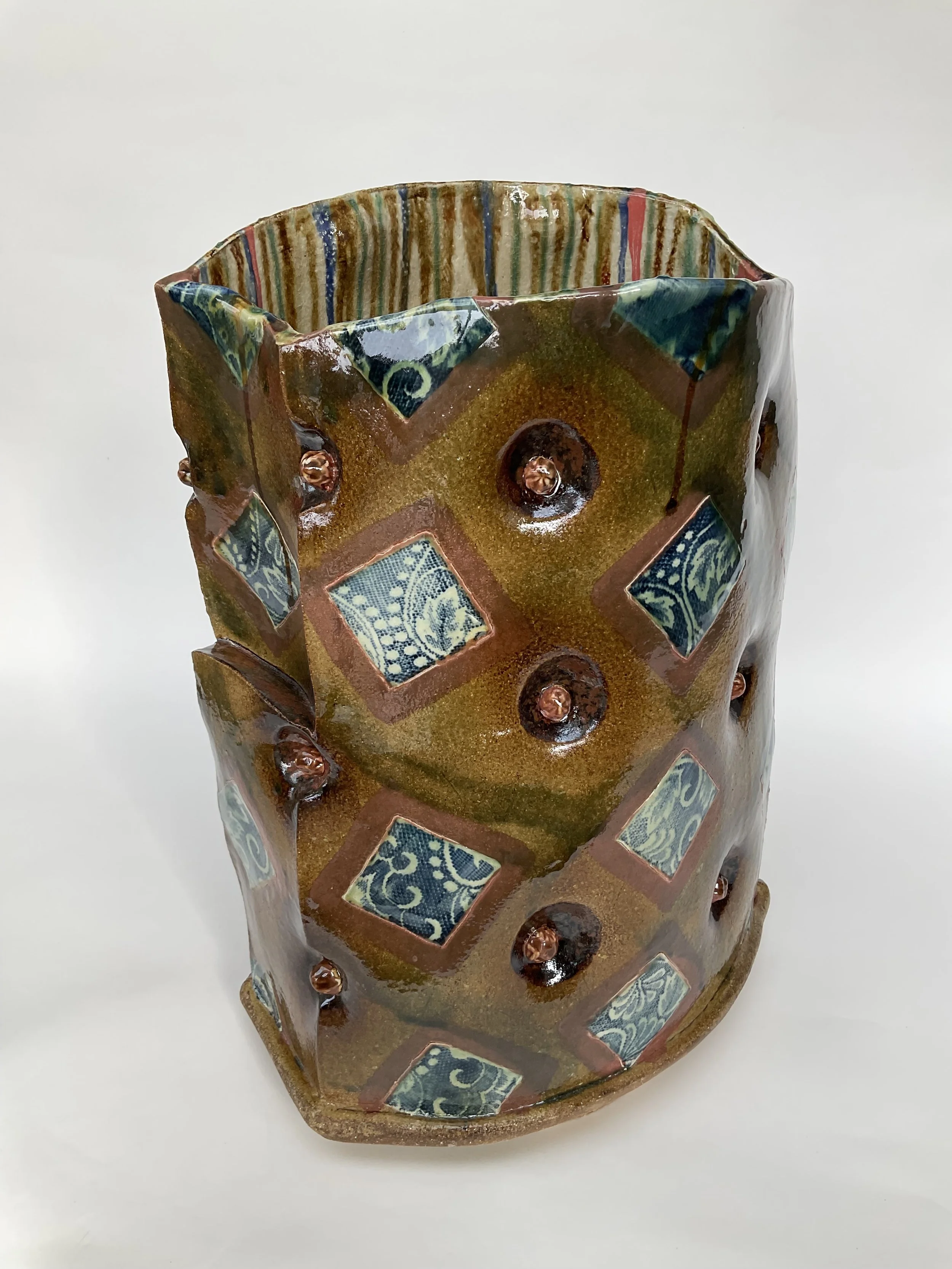 Architectural, sculpted sources of inspiration are not confined to manmade locations. I love our garden and over many years I have come to more fully appreciate the fascinations of insects. Some of you will know that I do my best to keep bees but this is not my only connection to insect habitats and needs. The Insect Hotels I make have been a part of every show and the patterns and glaze decoration has changed over the years. These are a new design and will be out on show this year.